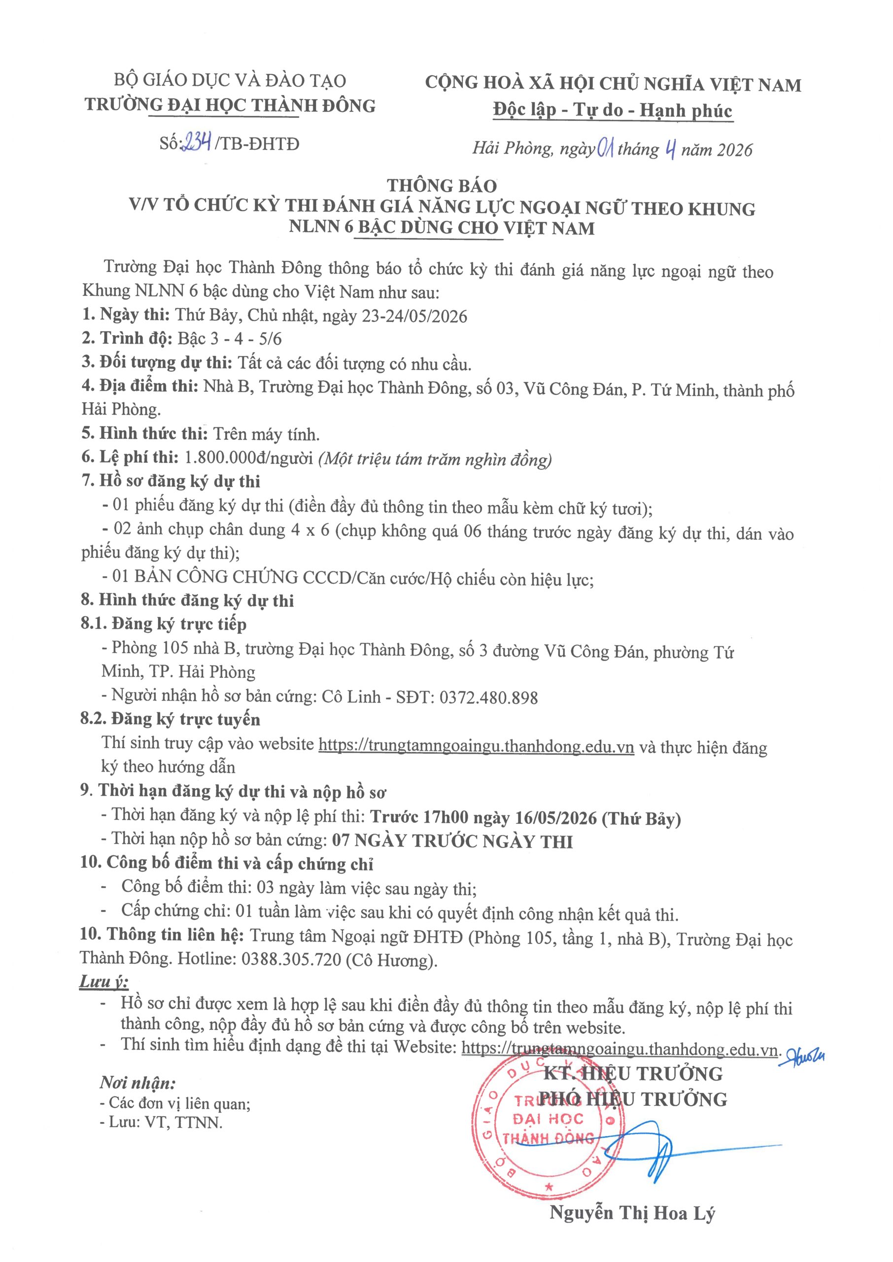 Thông báo tổ chức Kỳ thi Vstep ngày 23-24/05/2026